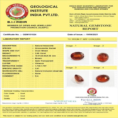 3.85 carat 4.23 ratti GII certified natural ceylon oval shape hessonite(Gomed) stone