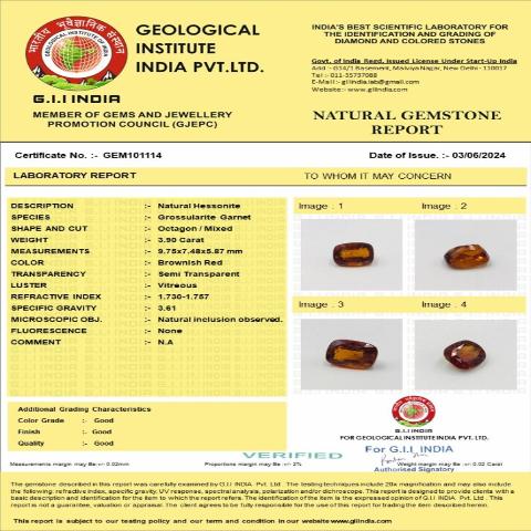 3.9 carat 4.29 ratti GII certified natural ceylon(sri lanka) cushion shape hessonite(gomed) stone