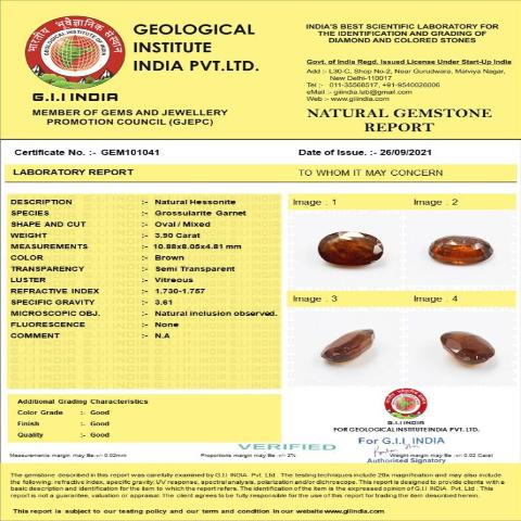 3.9 Carat (4.29 Ratti) IGL Certified Natural Ceylon (Sri Lanka) Hessonite (Gomed) Gemstone