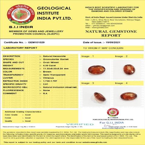4.3 Carat (4.73 Ratti) IGL Certified Natural African Hessonite (Gomed) Gemstone