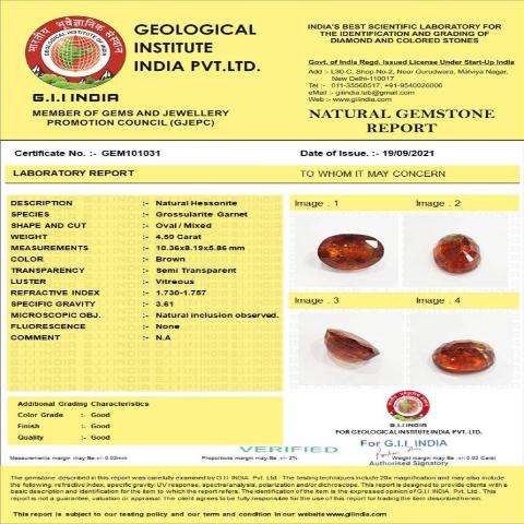 4.5 carat 5 ratti GII certified natural ceylon(sri lanka) oval shape hessonite(gomed) stone