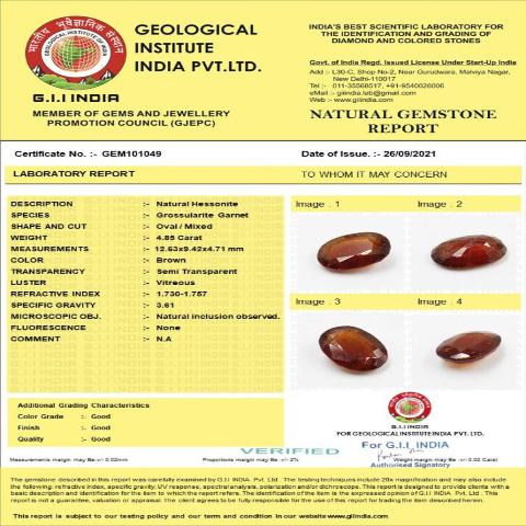 4.85 Carat (5.34 Ratti) Natural Ceylon Oval Hessonite (Gomed) Gemstone