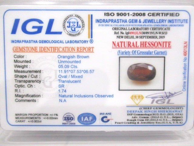 5.09 Carat (5.6 Ratti) Natural Ceylon Oval Hessonite (Gomed) Gemstone