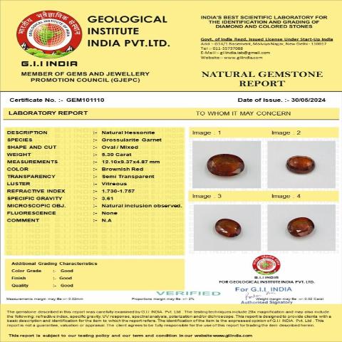 5.3 carat 6 ratti IGL certified natural African hessonite(gomed) stone