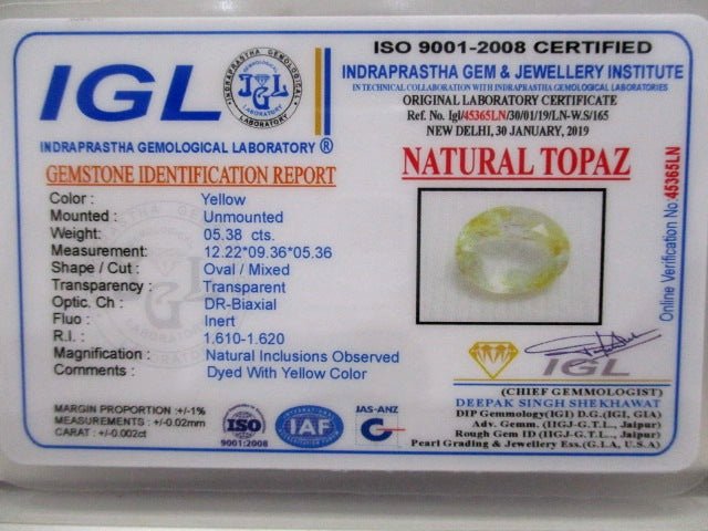 5.47 carat 6.02 ratti natural IGL certified Indian Cushion shape yellow topaz stone