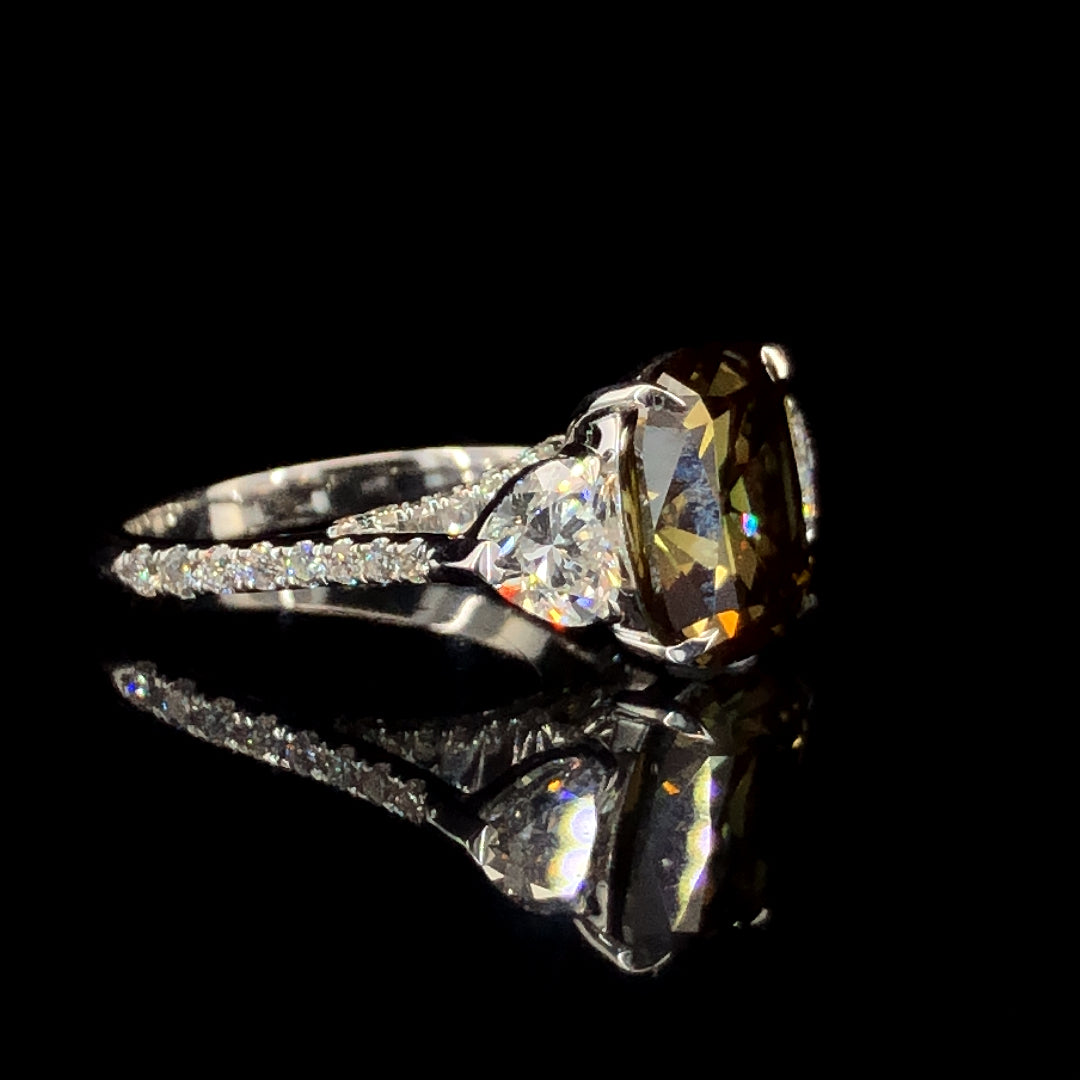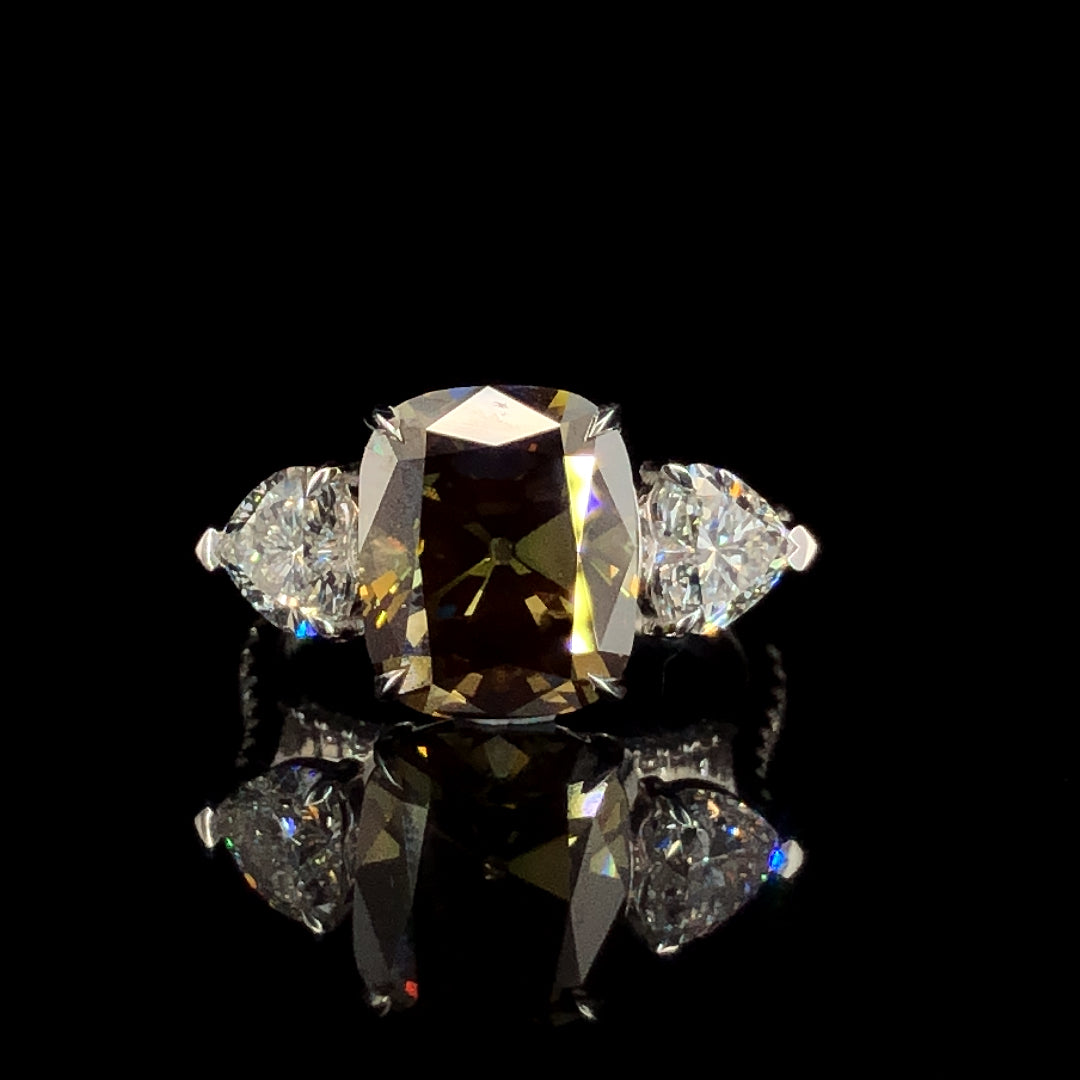 5.95ct Lab-Grown Diamond Green Cushion & Heart Shape Ring In 14k White Gold