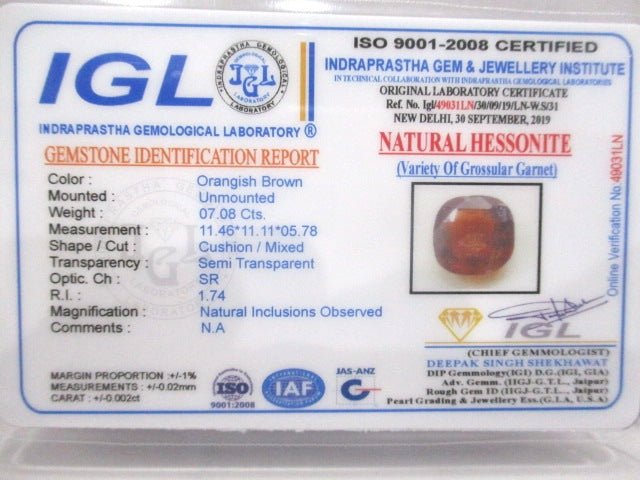 7.08 carat 8 ratti IGL certified natural African hessonite(gomed) stone