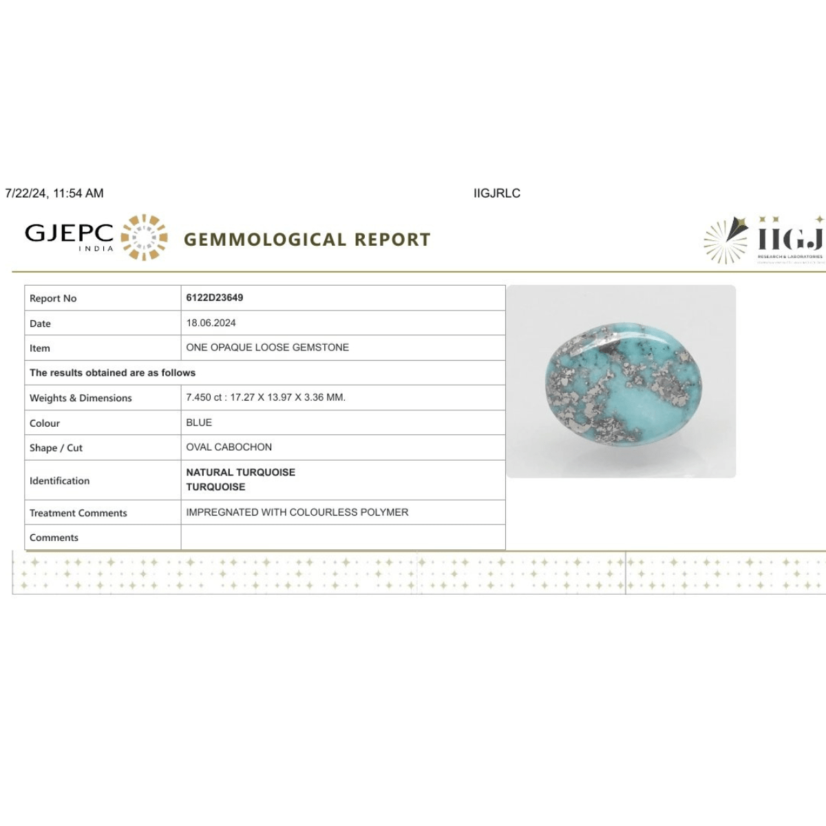 7.45 carat 8.25 ratti IGI-GTL certified AAA+ Quality Blue with golden Bisbee oval Turquoise (Firoza) Stone