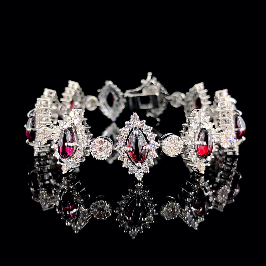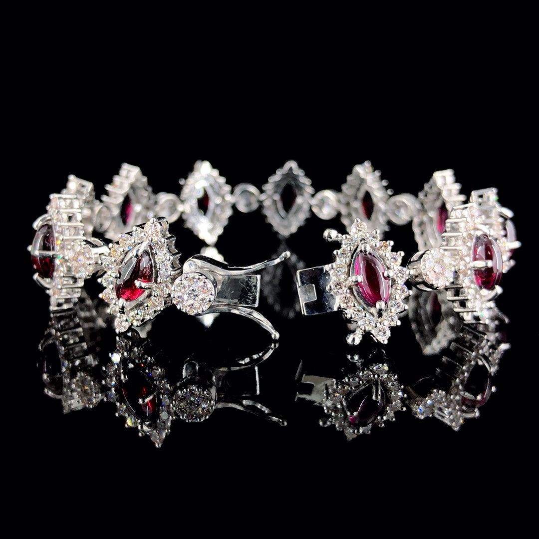 8.40ct Natural Gomed Stone & 6.25ct Lab-grown Diamond Bracelet In Silver