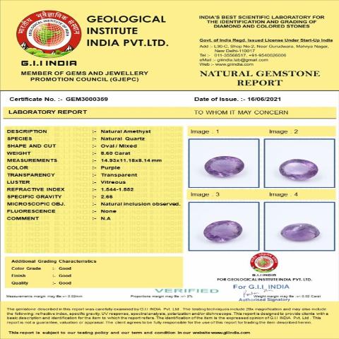 8.6 carat 9.46 ratti GII Certified Natural American Oval Shape Amethyst – Premium Quality, Authentic Gemstone