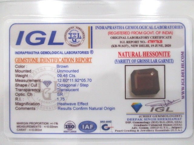 9.48 Carat 10.43 Ratti IGL Certified Natural Ceylon (Sri Lanka) Octagonal shape Hessonite (Gomed) Gemstone