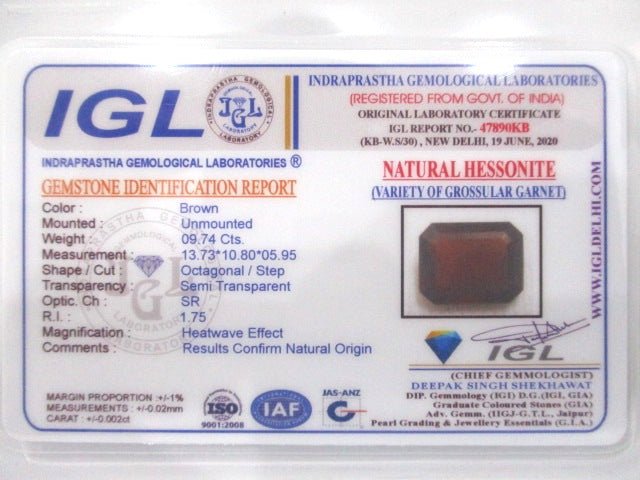 9.74 Carat (10.71 Ratti) IGL Certified Natural Ceylon (Sri Lanka) Hessonite (Gomed) Gemstone