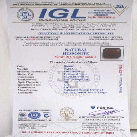 9.88 Carat (11 Ratti) Natural Ceylon Octagonal Hessonite (Gomed) Gemstone