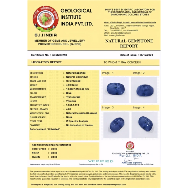 Buy Certified Natural Ceylon Blue Sapphire Untreated, Unheated by Carat 4carat