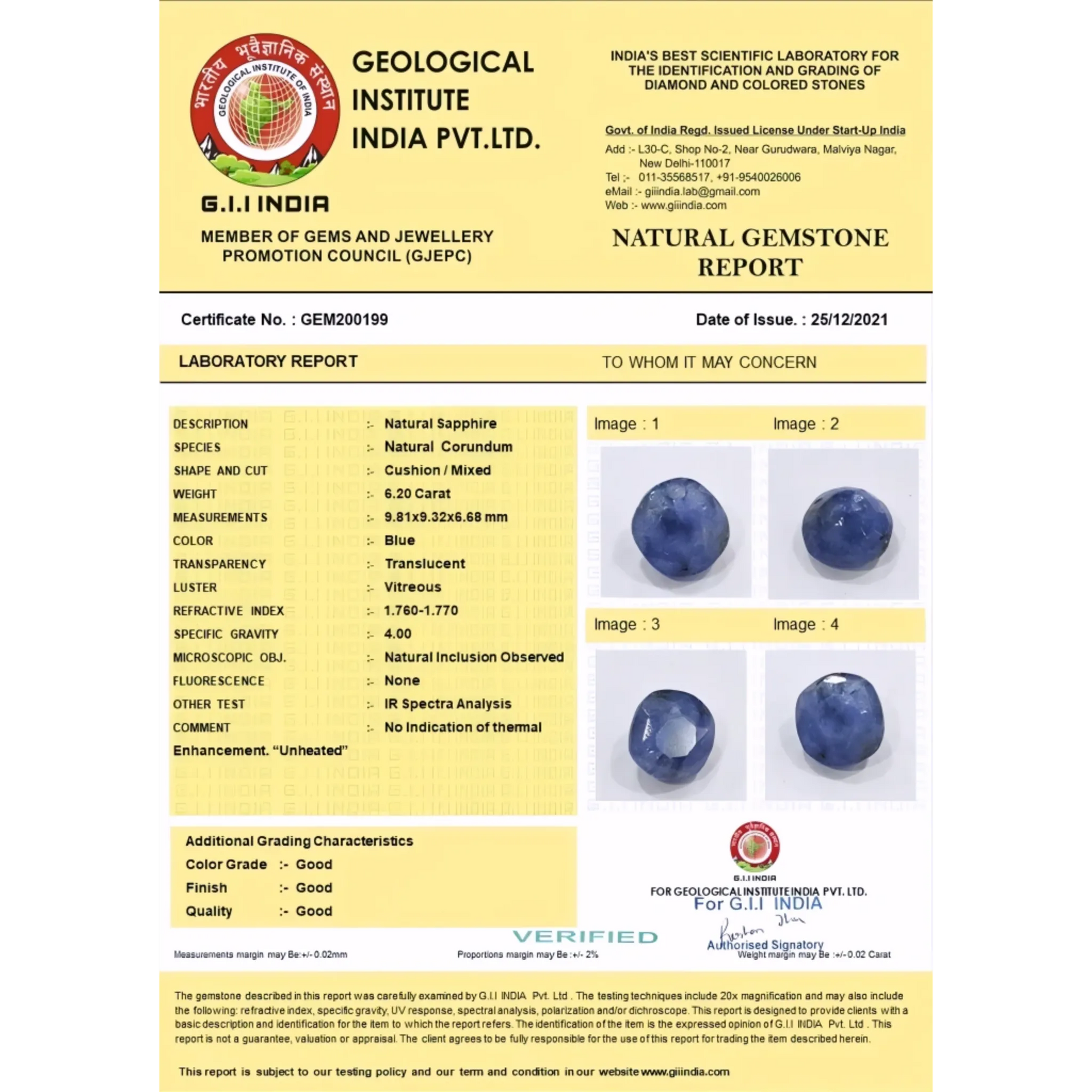 Buy Certified Natural Ceylon Blue Sapphire Untreated, Unheated by Carat 6.2 carat
