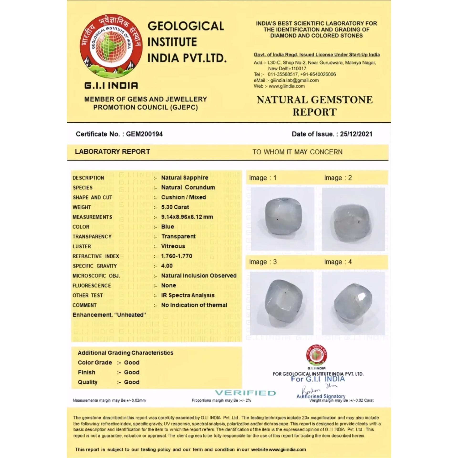 Buy Certified Natural Ceylon Pitambari Untreated, Unheated by Carat 5.3carat