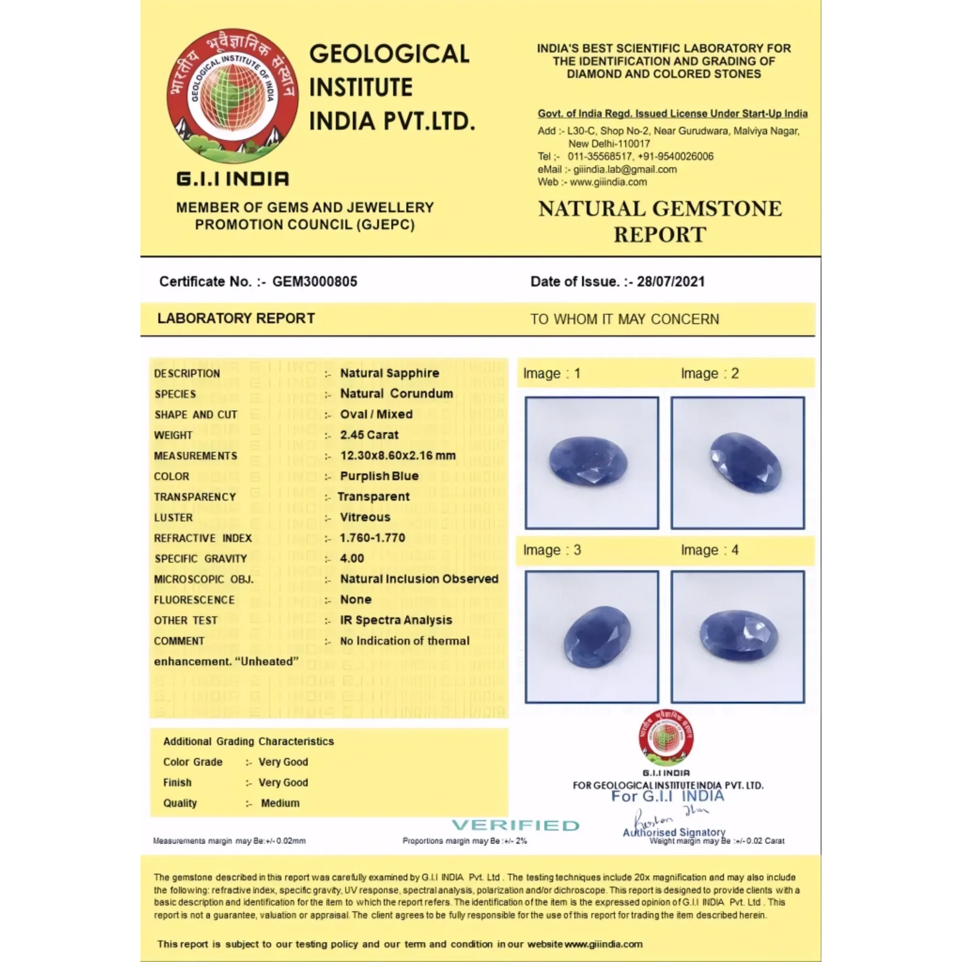 Buy Ceylon Blue Sapphire 2.45Carat – Lab Certified Neelam Online