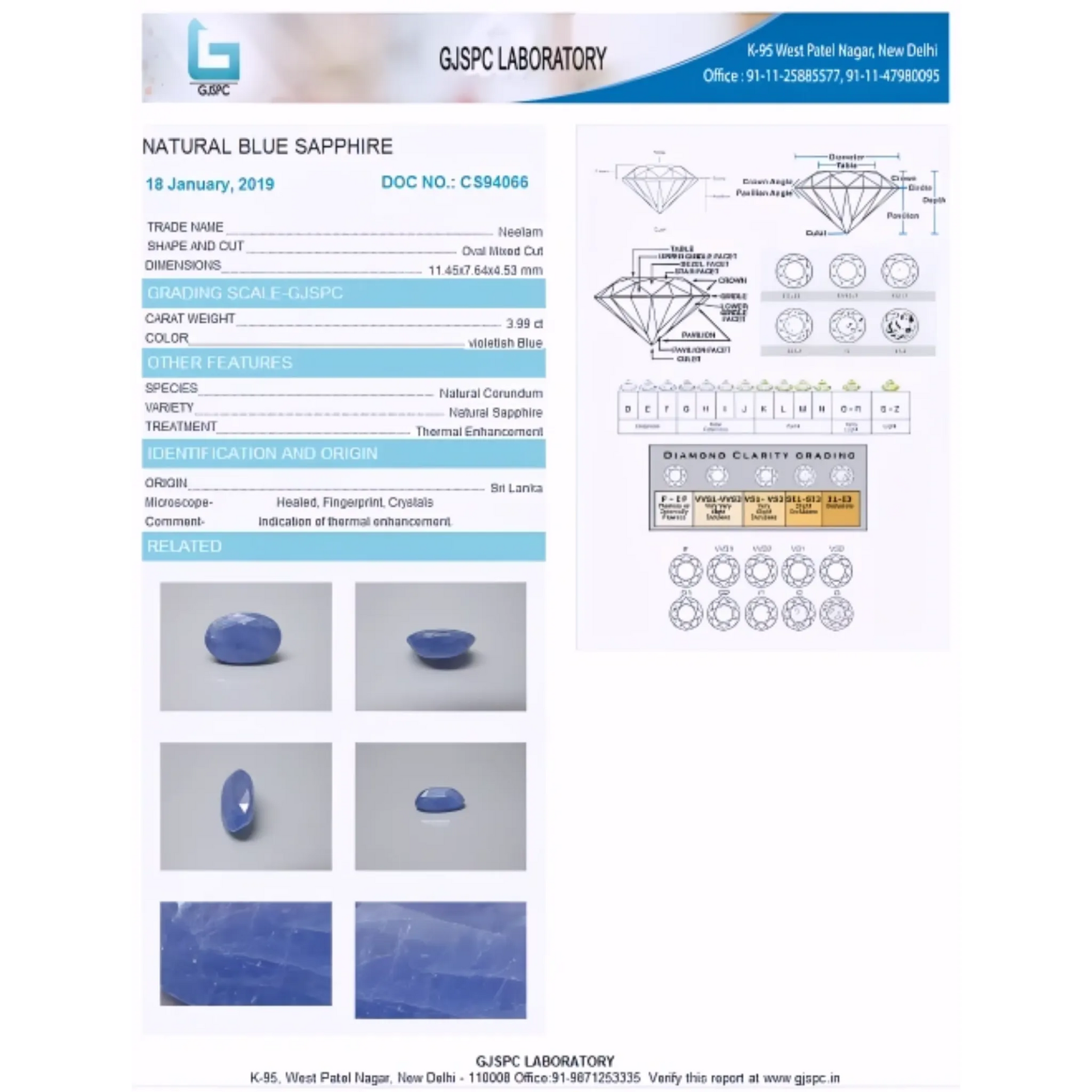 Certified Unheated Sri Lanka Blue Sapphire – Natural Untreated Gemstone 3.99 Carat