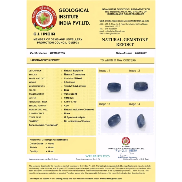 Certified Unheated Ceylon Blue Sapphire – Natural Untreated Gemstone 5.00 Carat