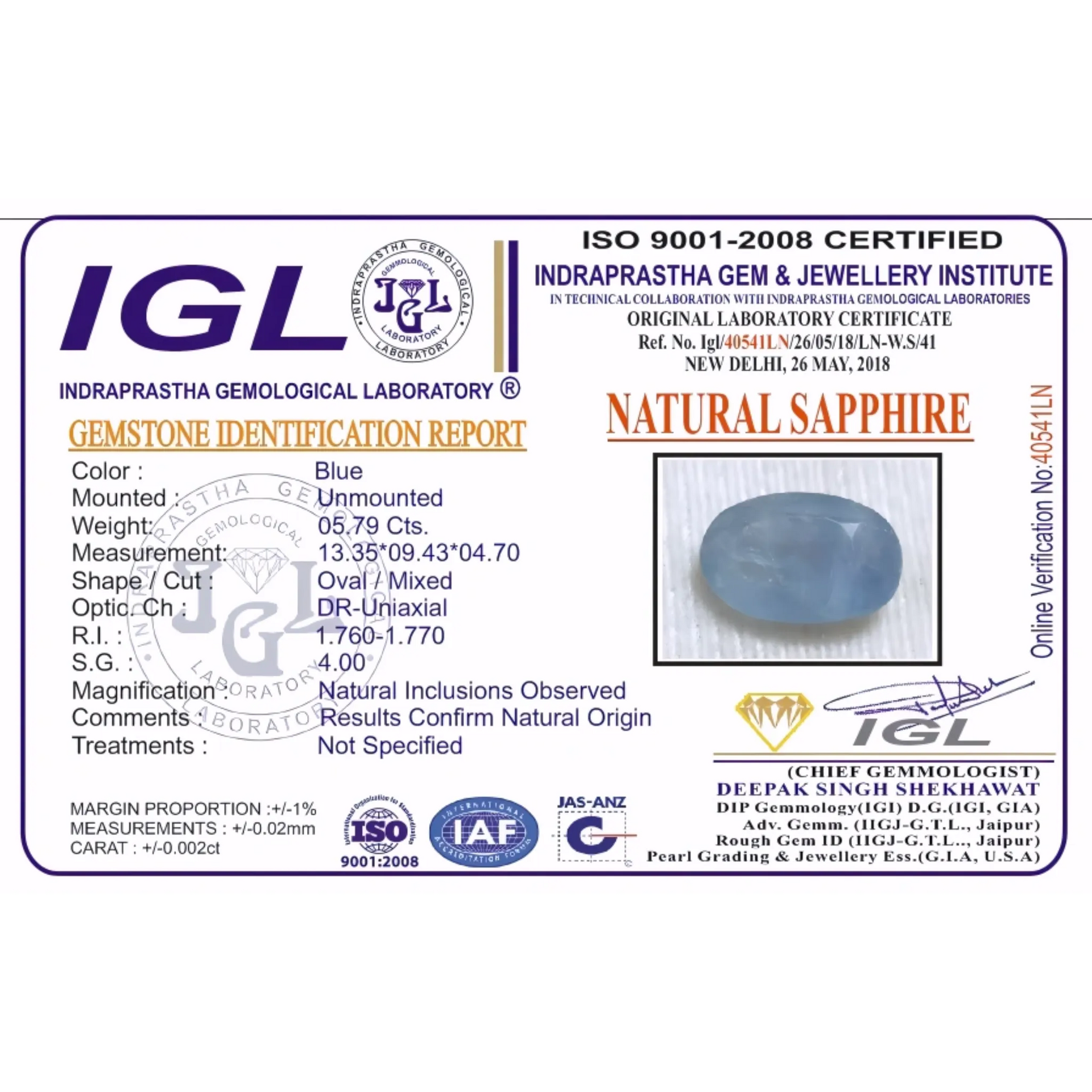 Certified Unheated Ceylon Pitambri Sapphire – Natural Untreated Gemstone 5.79Carat