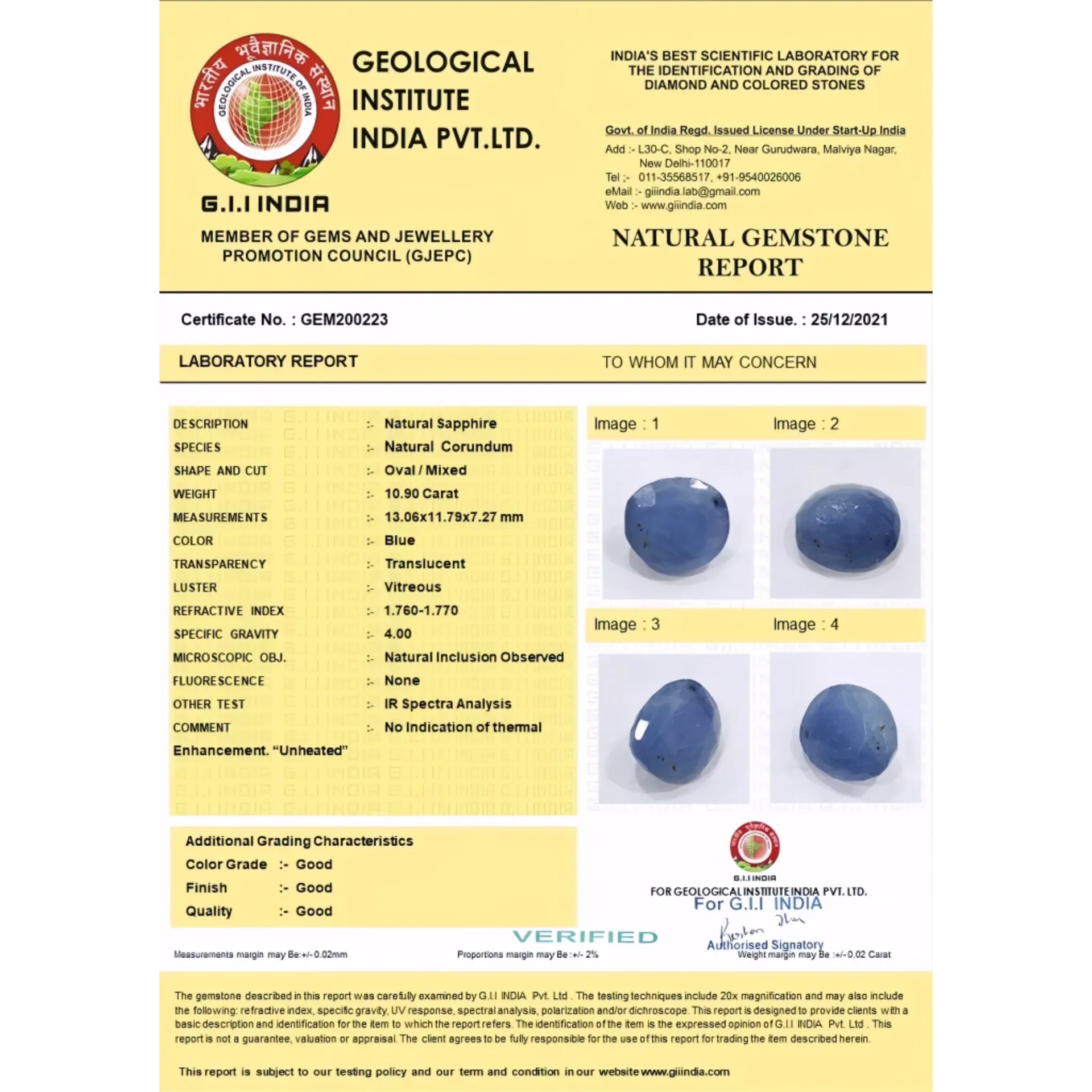 Ceylon Blue Sapphire Unheated & Untreated 10.9 carat Oval Shape Certified