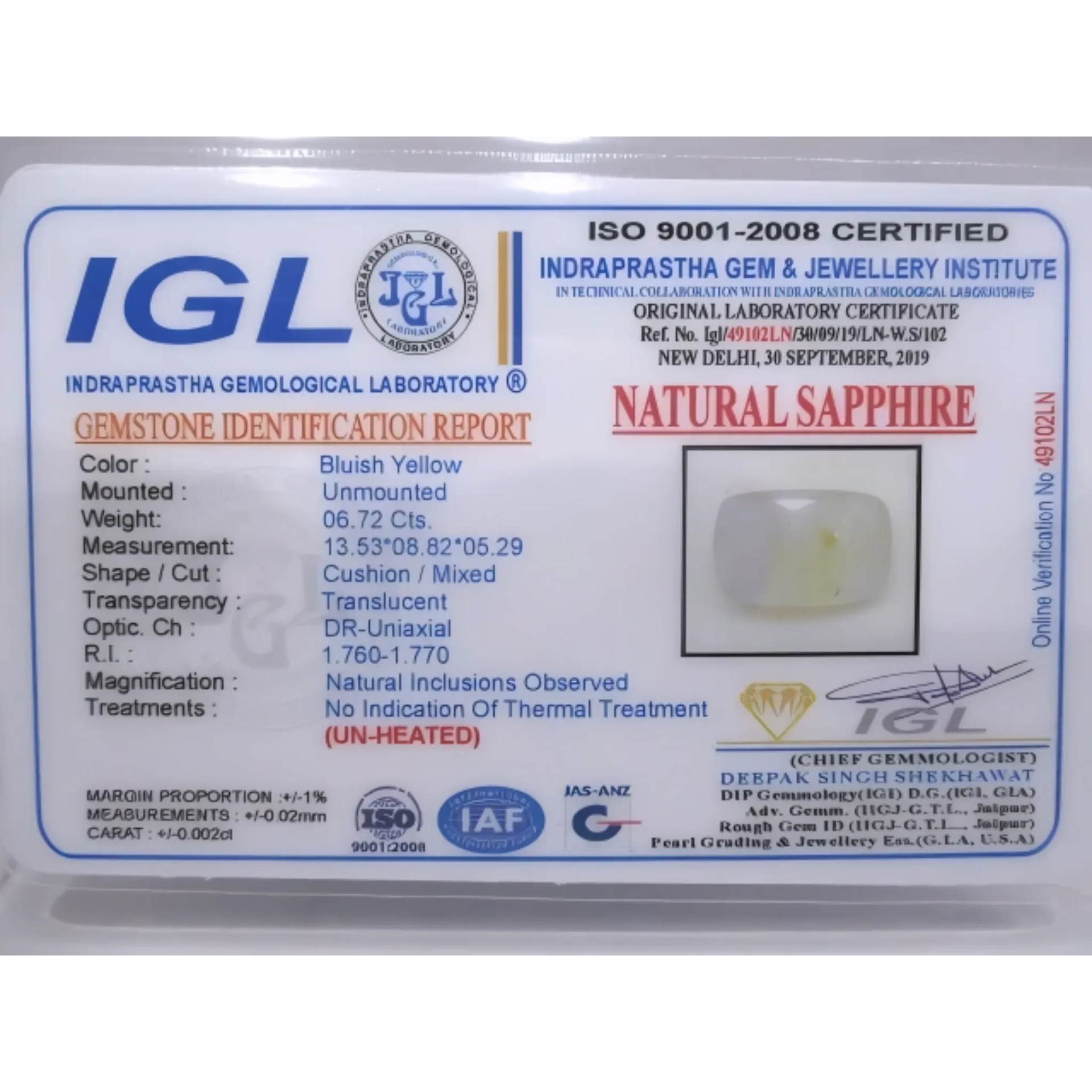 Ceylon Pitambari Unheated & Untreated 6.72 carat Cushion Shape Certified