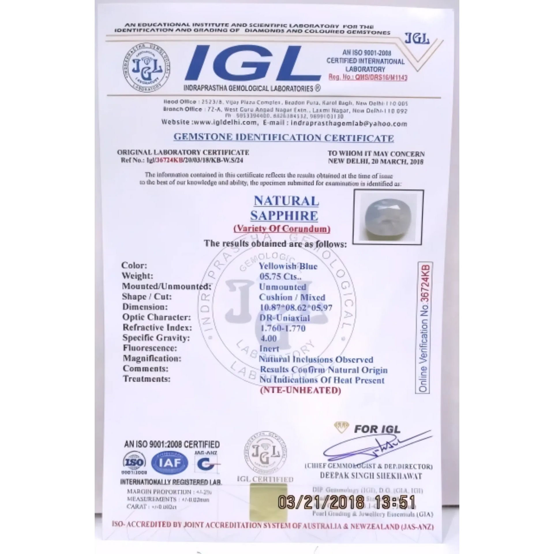 Ceylon Pitambari Unheated & Untreated 5.75 carat Cushion Shape Certified
