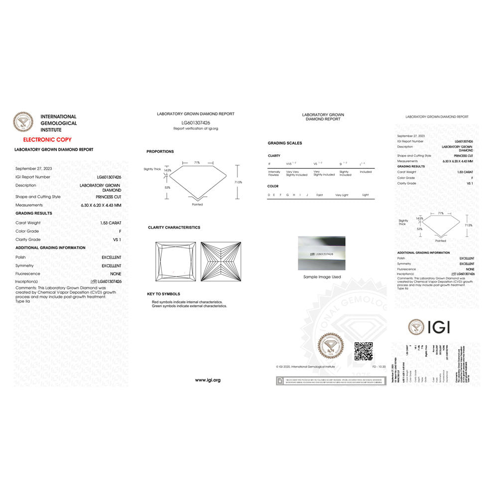 Fancy Princess Cut 1.53 Carat Lab Grown Diamond