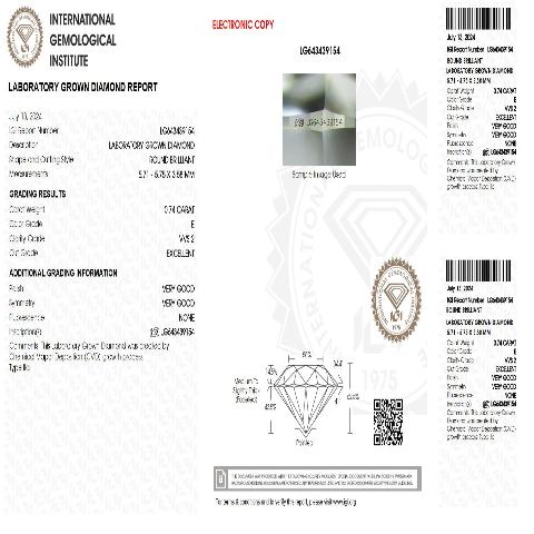 Elegant 0.74 Carat E VVS2 Lab-Grown Diamond