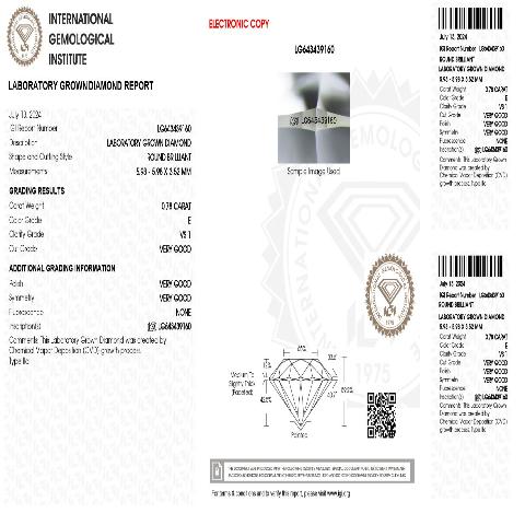 Elegant 0.78 Carat E VS1 Lab-Grown Diamond
