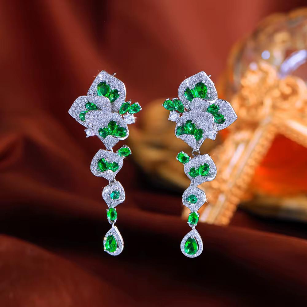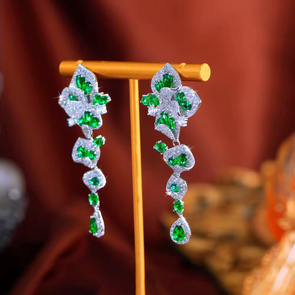 Emerald Symphony: 15ct Lab Emerald &10ct Lab Grown Diamond Dangle Earrings in 14k white gold