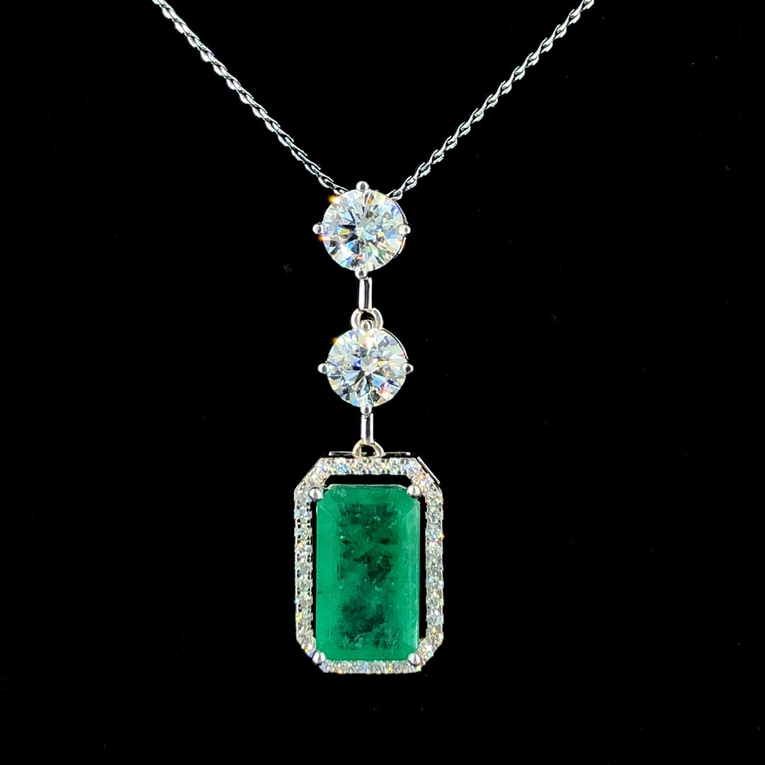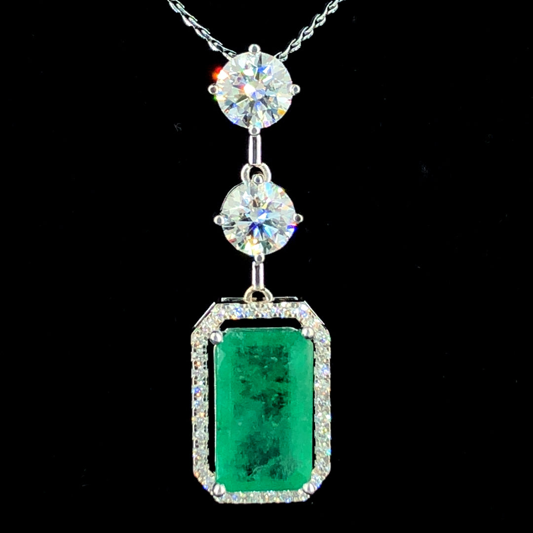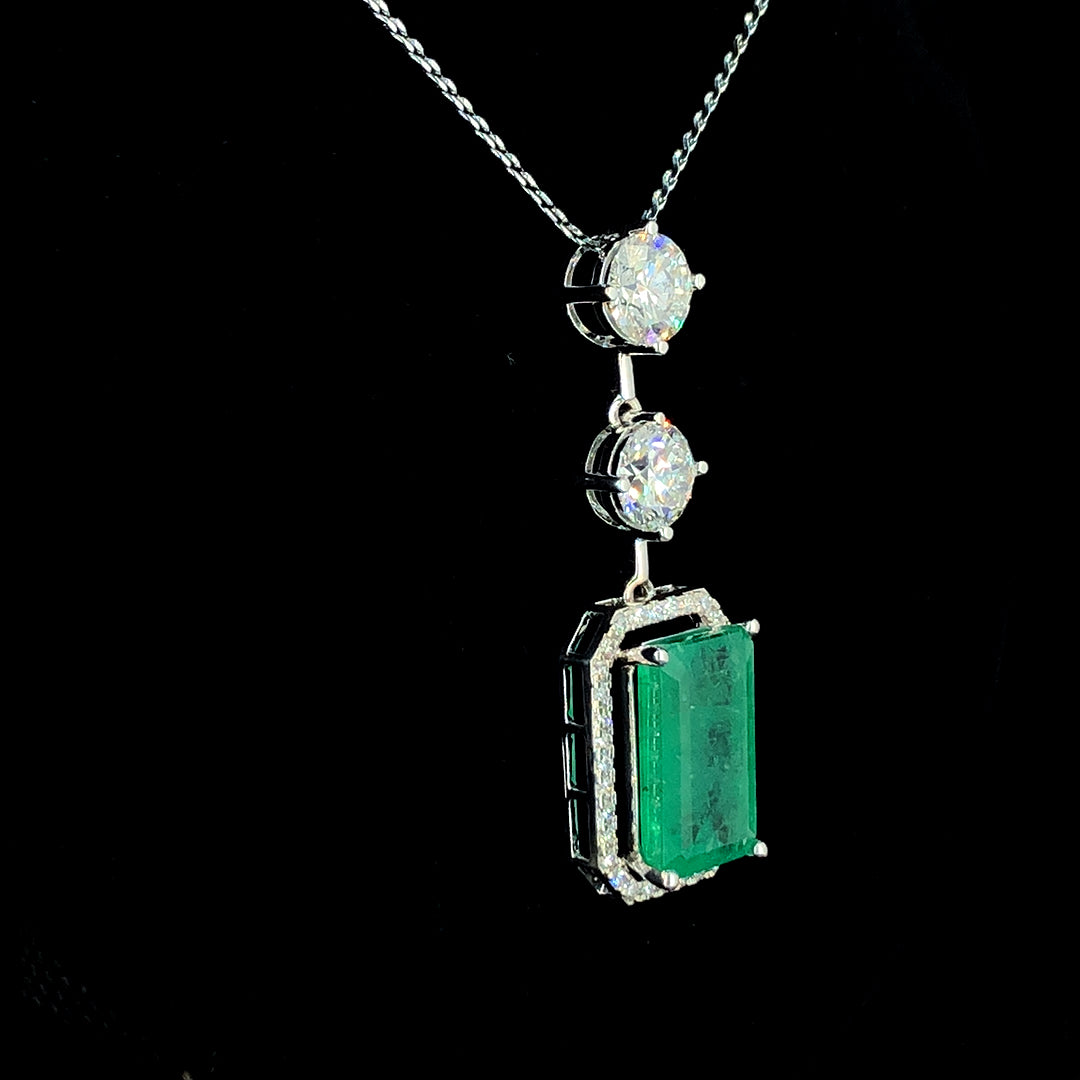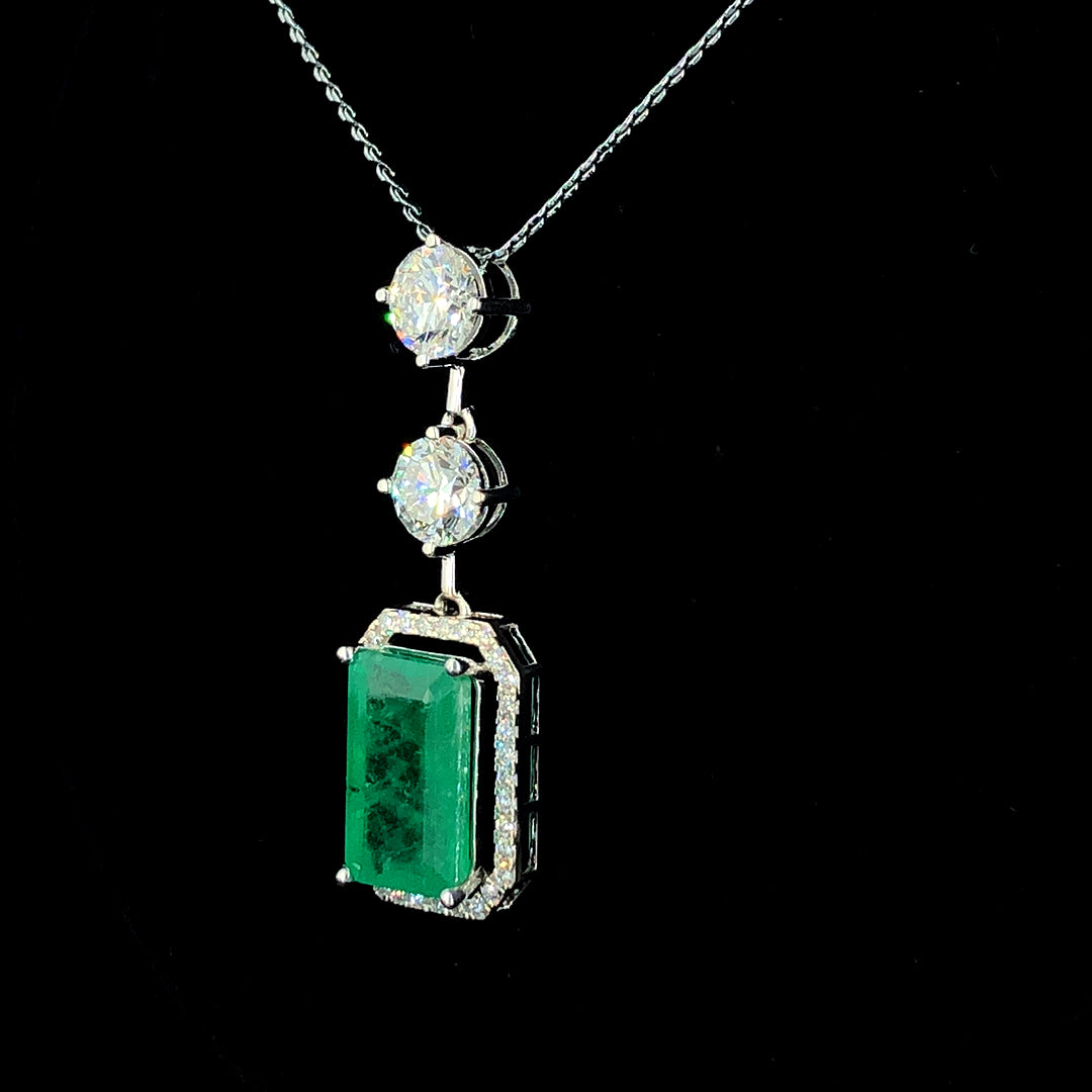 Exquisite 14K White Gold Pendant with 6.20ct Emerald and 2.45ct Lab-Grown Diamonds