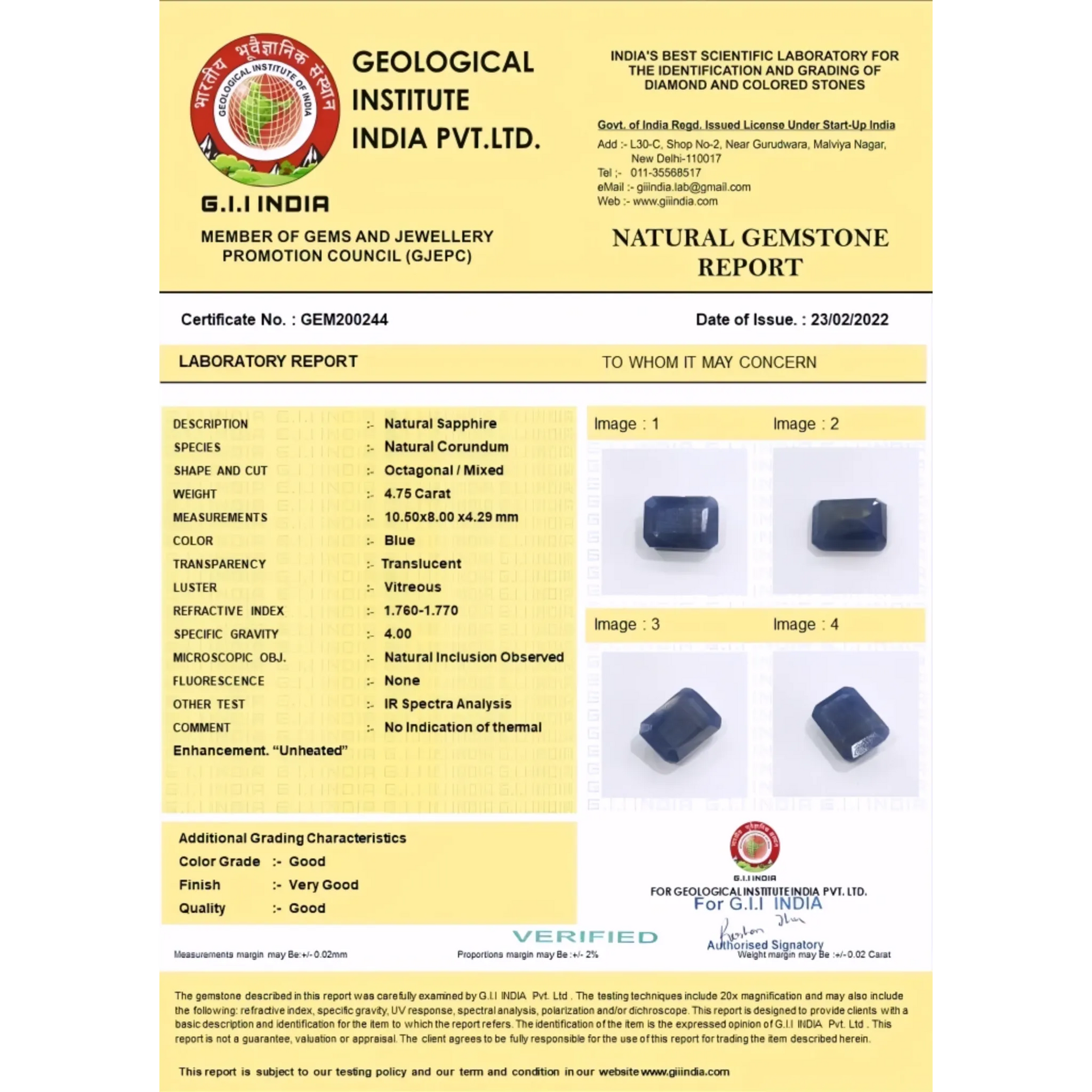 High Energy Blue Sapphire 4.75 Carat – Suitable for Kundli & Birth Chart