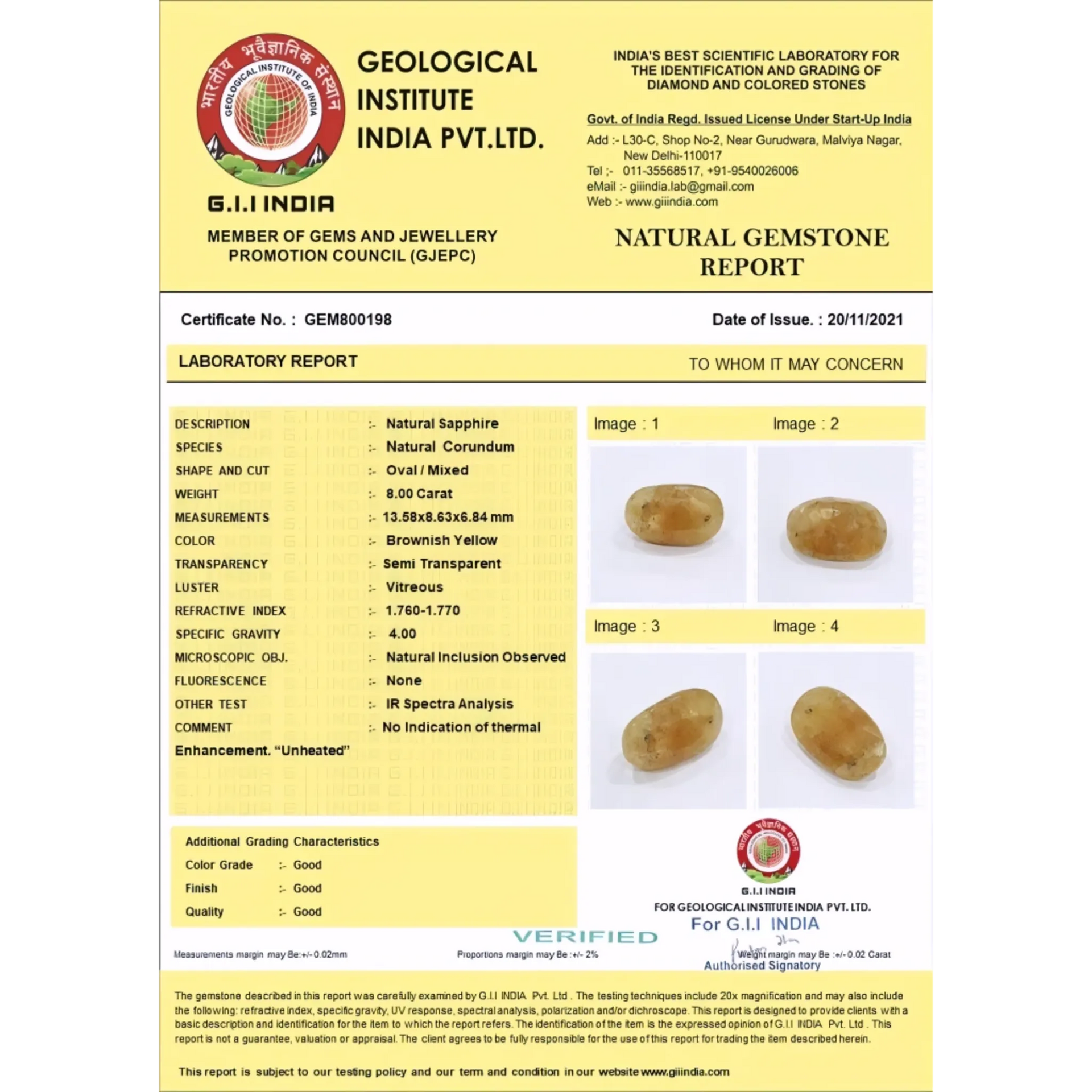 High-Quality Natural Pukhraj – Ceylon Yellow Sapphire with Certificate 8ct