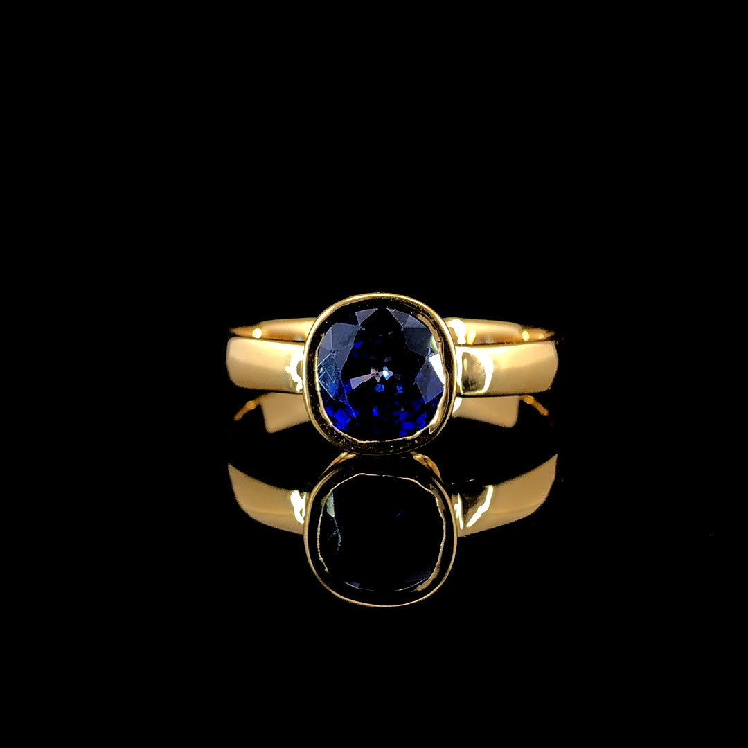 Luxurious 2.65ct Blue Sapphire Ring In 18k Yellow Gold