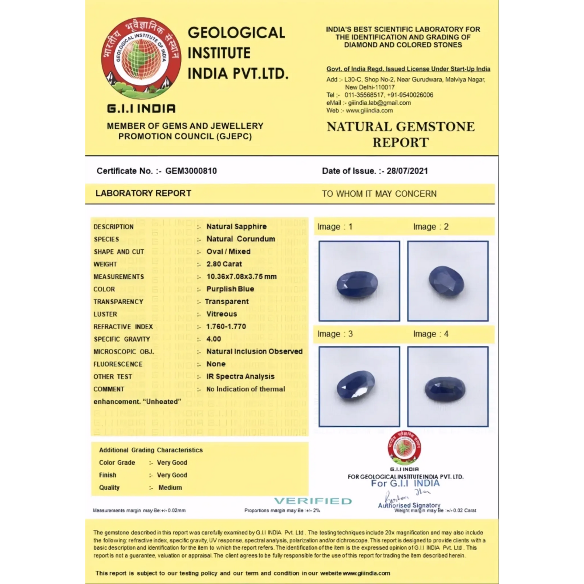 Natural Blue Sapphire 2.8 Carat – Certified Ceylon Neelam for Astrology