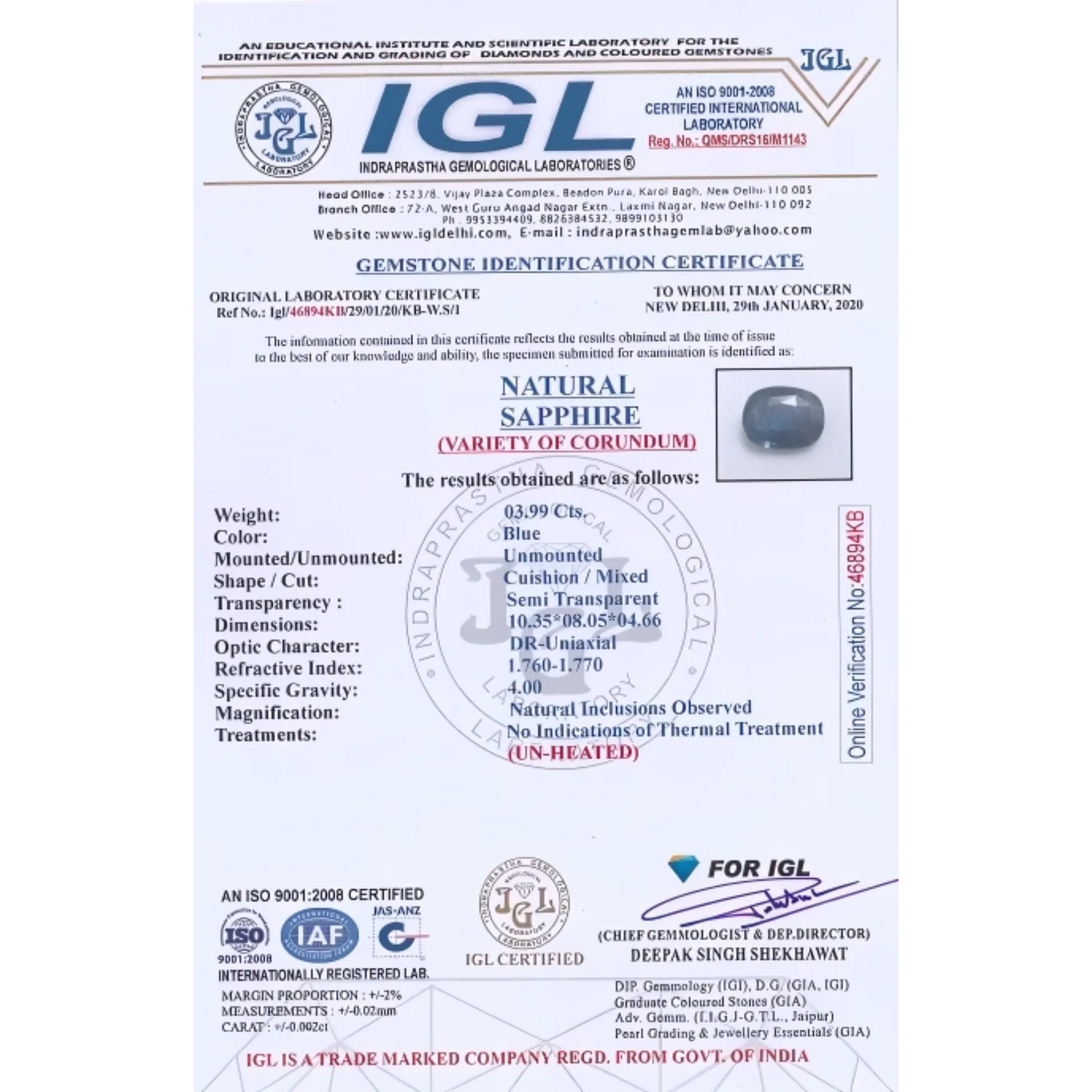 Natural Blue Sapphire 3.99 Carat – Certified Ceylon Neelam for Astrology