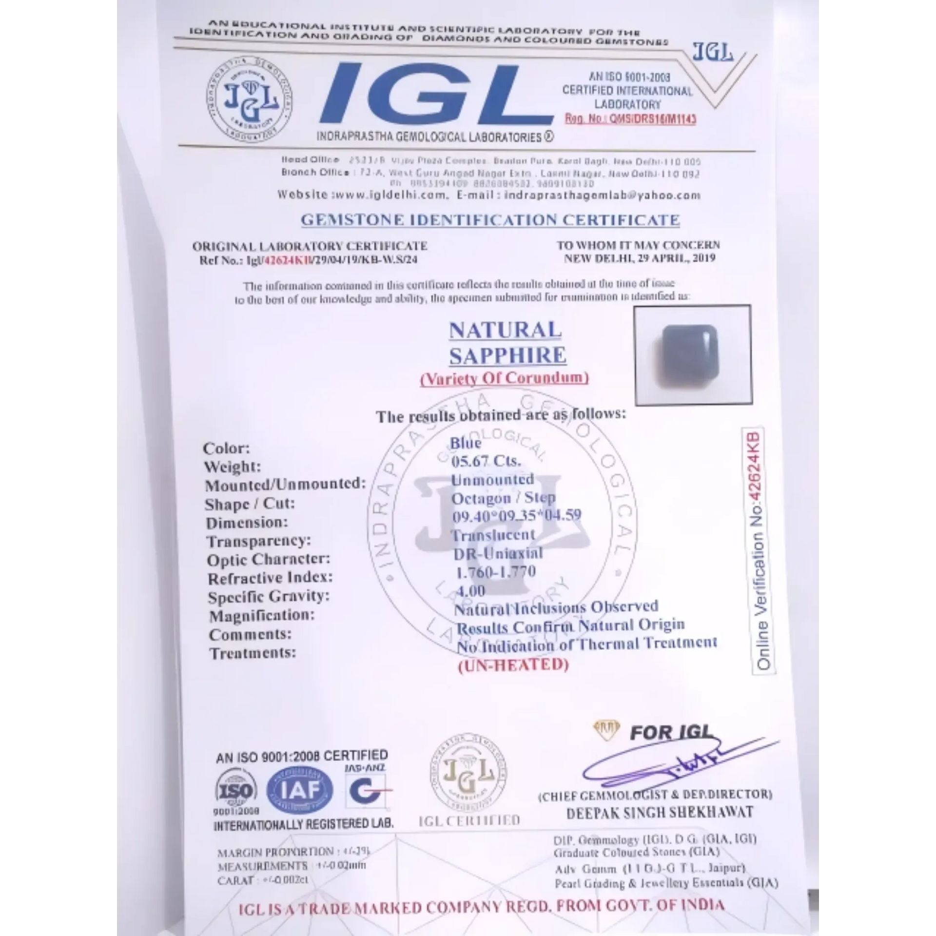 Natural Blue Sapphire 5.67Carat – Vedic Astrological Gemstone