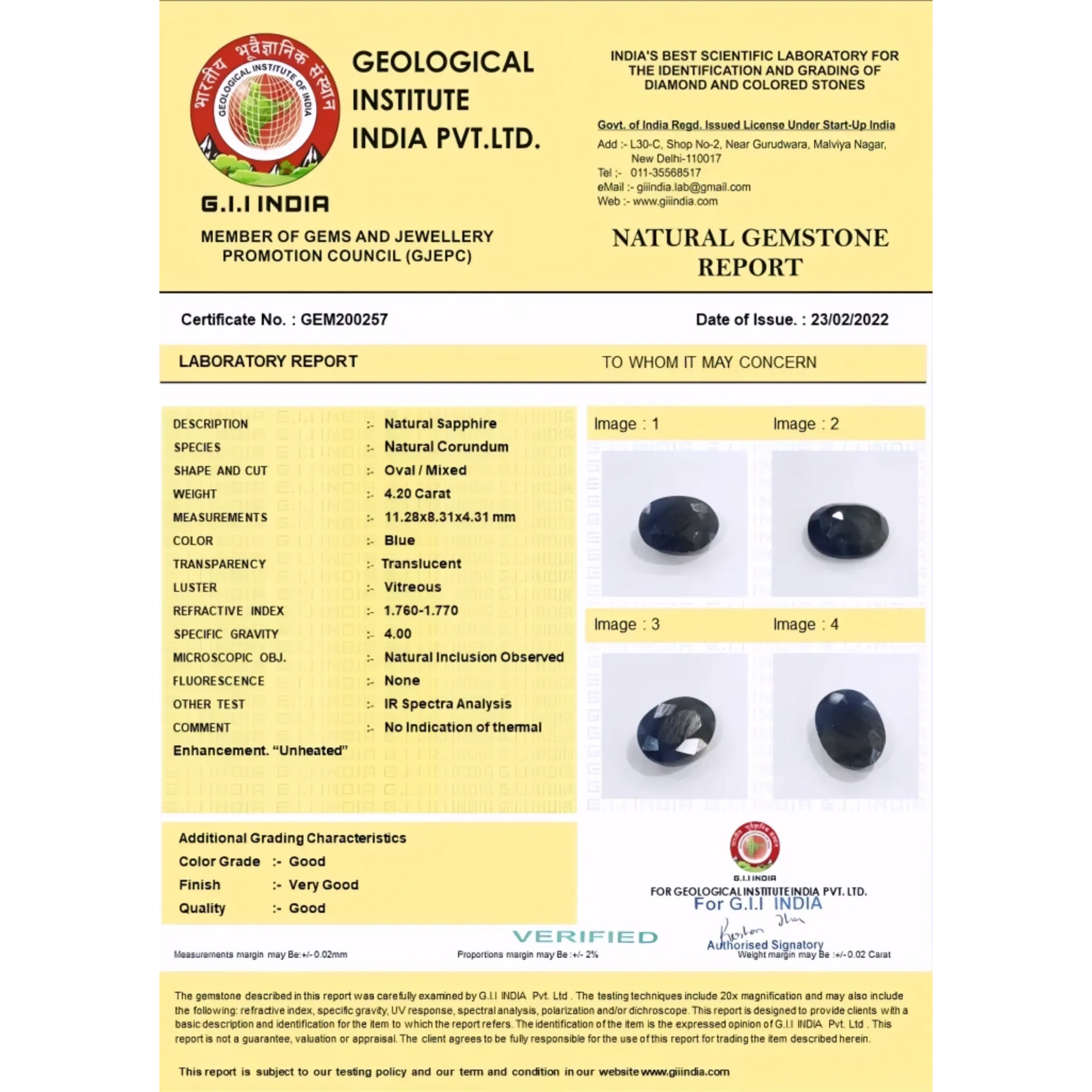 Natural Ceylon Blue Sapphire Untreated & Unheated GIA/IGI Certified 4.2 carat