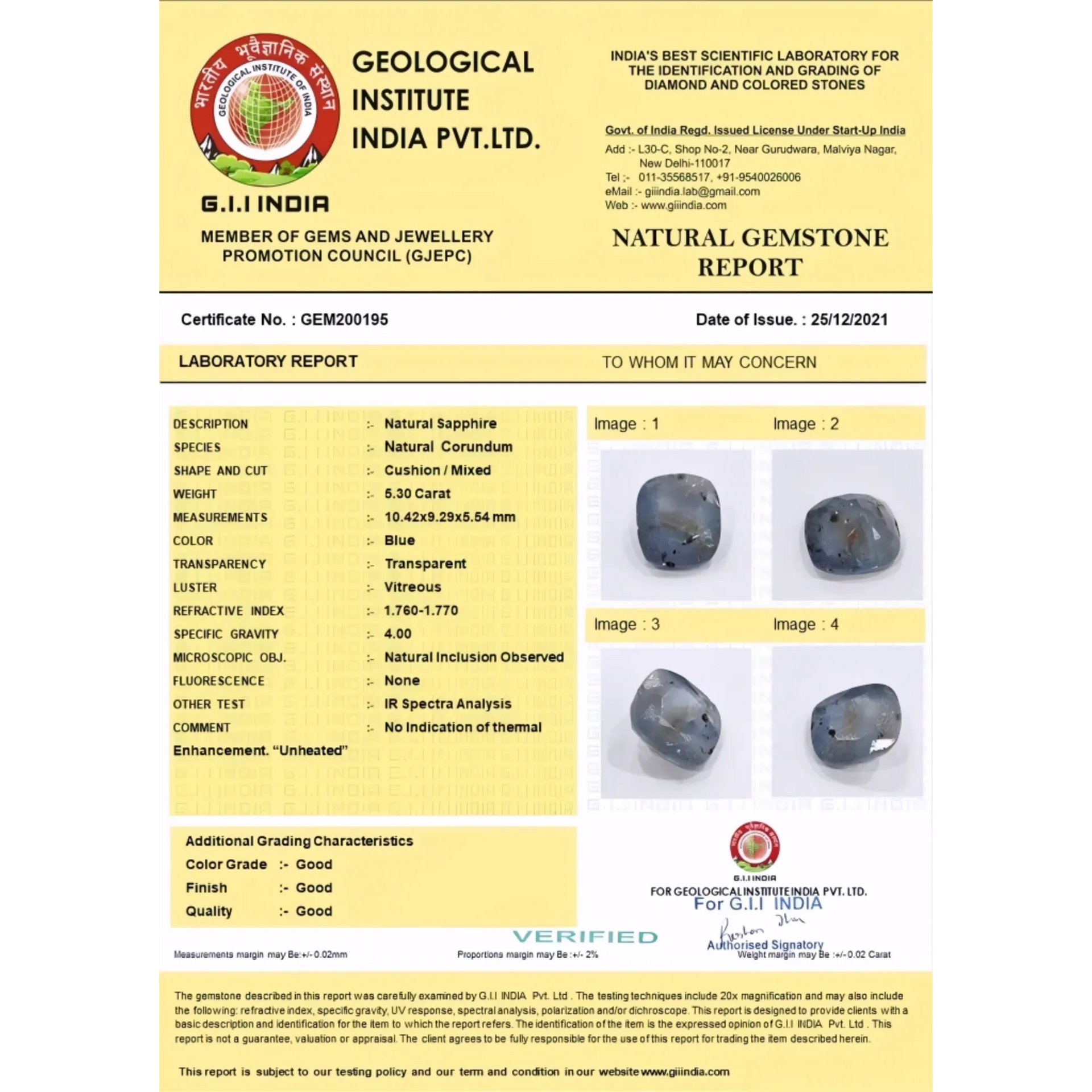 Natural Ceylon Blue Sapphire Untreated & Unheated GIA/IGI Certified 5.3 carat