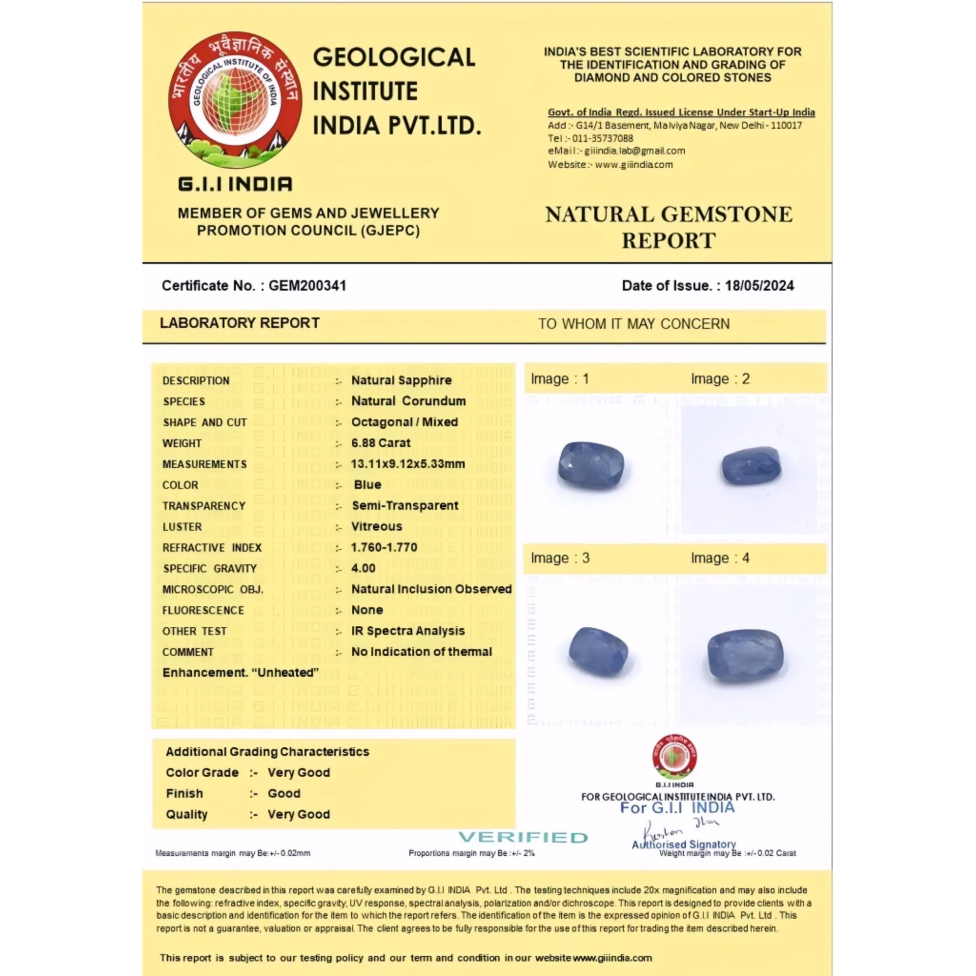 Natural Ceylon Blue Sapphire Untreated & Unheated GIA/IGI Certified 6.88 carat