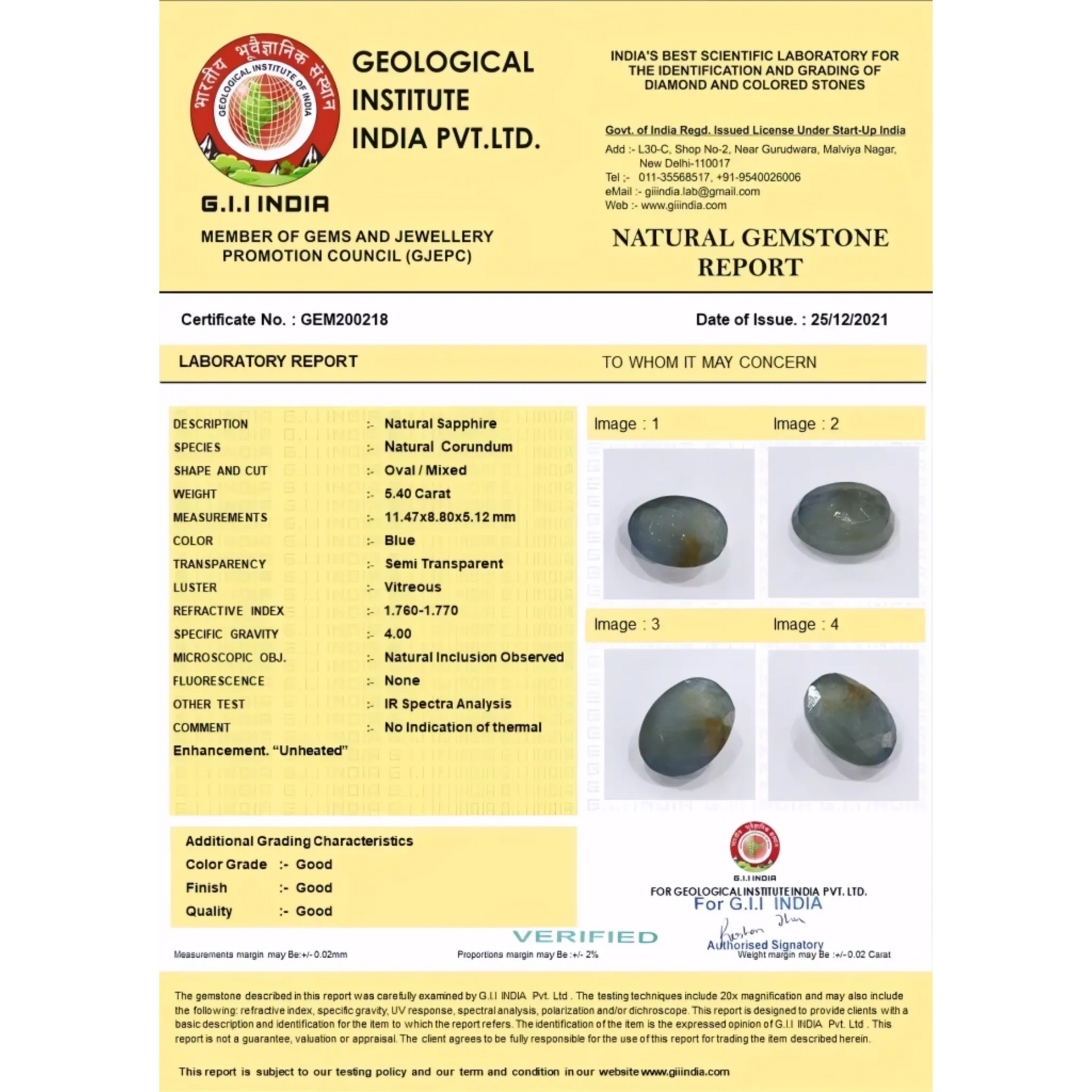 Natural Ceylon Pitambari Untreated & Unheated GIA/IGI Certified 5.4 carat