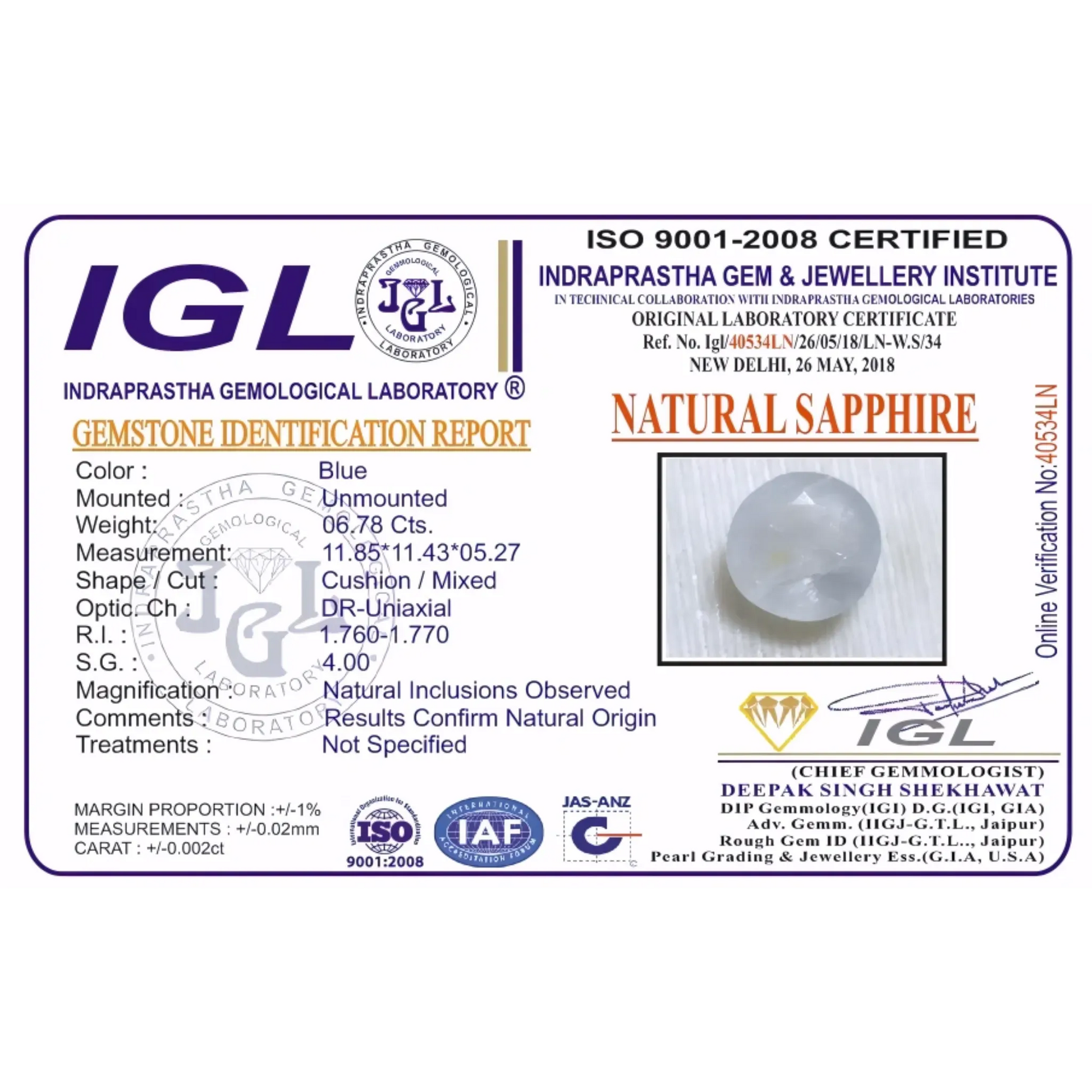 Natural Ceylon Pitambari Untreated & Unheated GIA/IGI Certified 6.78 carat