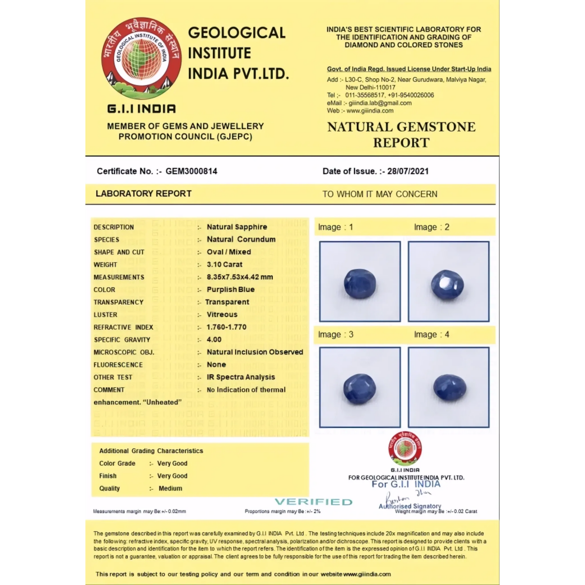Natural Neelam Gemstone 3.1 Carat – For Saturn Remedies