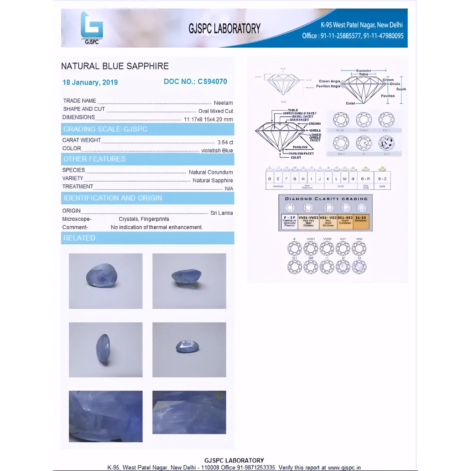 Natural Sri Lanka Blue Sapphire Untreated & Unheated GIA/IGI Certified 3.64carat