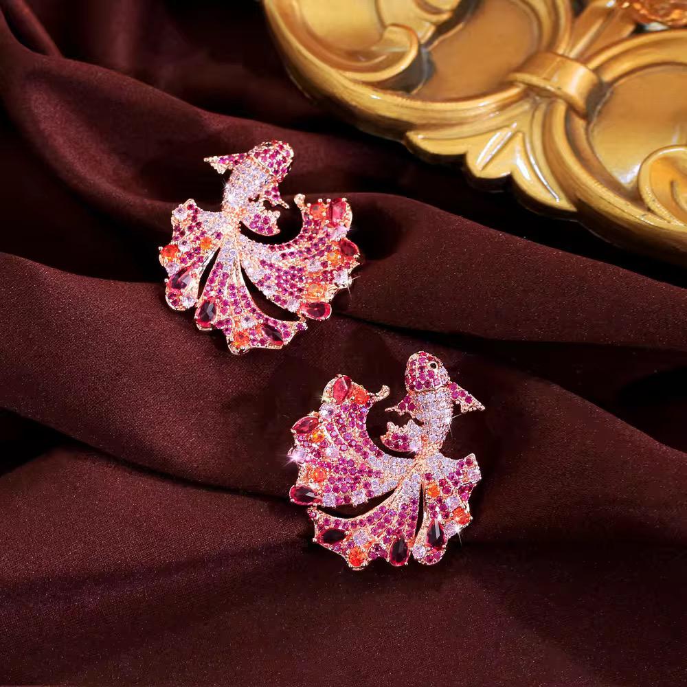 Ocean Majesty: 7ct Diamond & 10ct Gemstone Fish Earrings