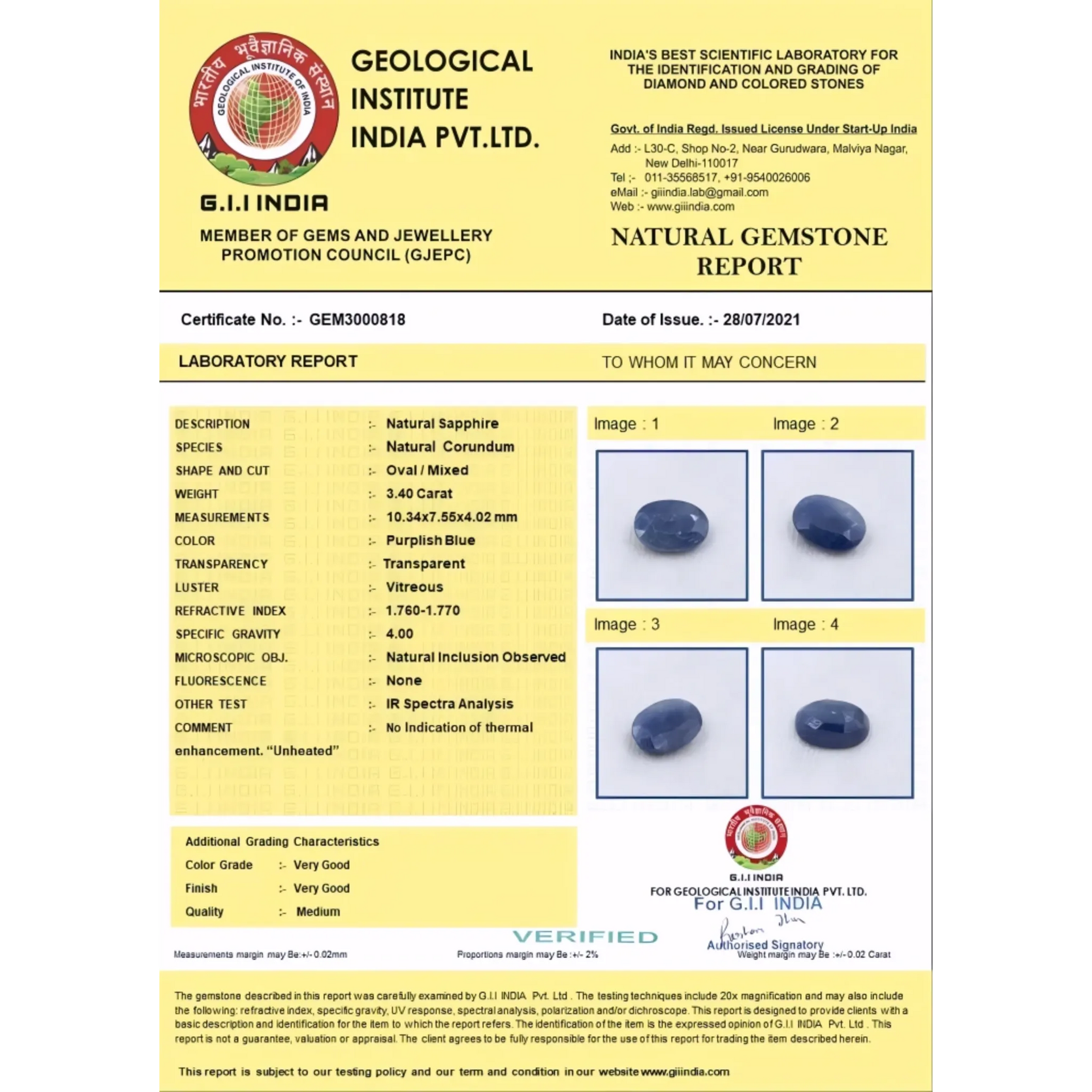 Premium Ceylon Blue Sapphire 3.4 Carat – Unheated & Untreated