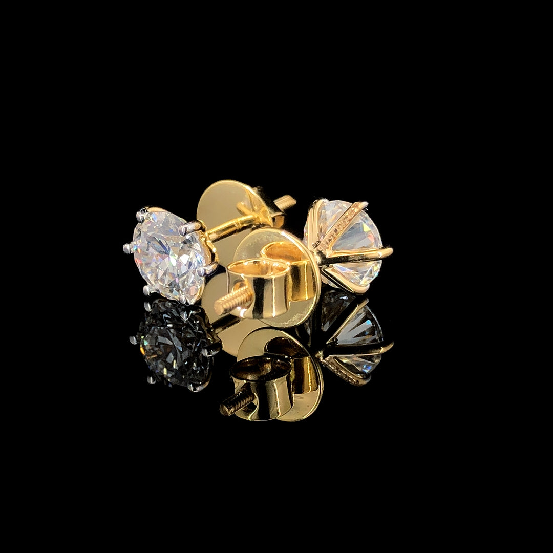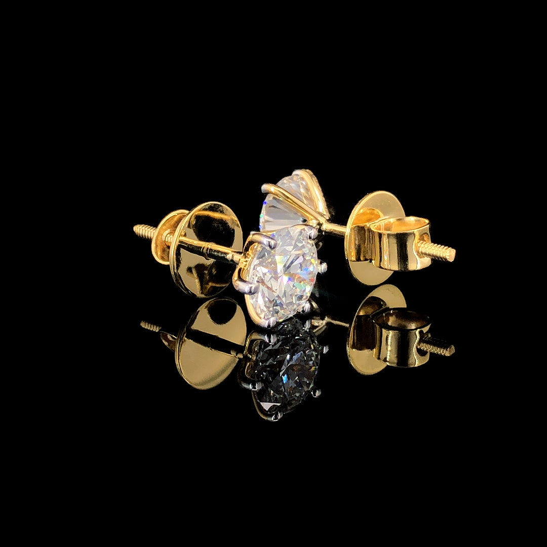 2.2 ct Round Lab Grown Diamond Stud Earrings In Yellow Gold 14K