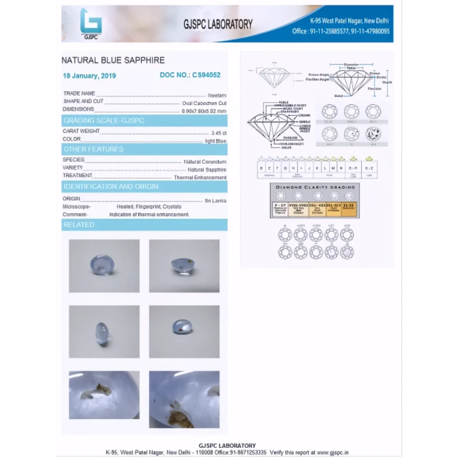 Sri Lanka Blue Sapphire Unheated & Untreated 3.45 carat Oval Shape Certified