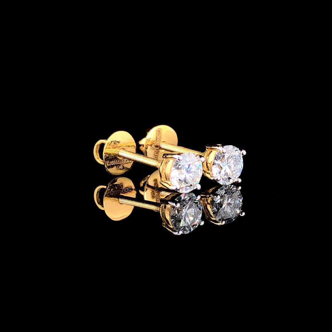 Timeless 9K Yellow Gold 1.07ct Round Lab Grown Diamond Stud Earrings